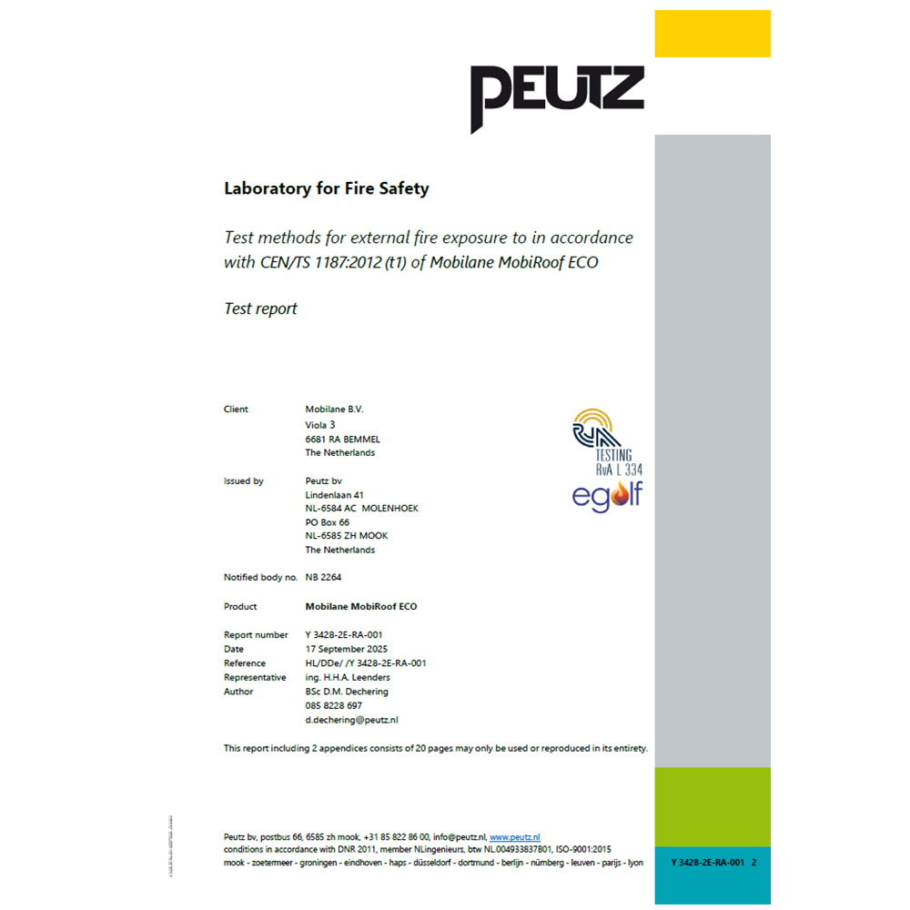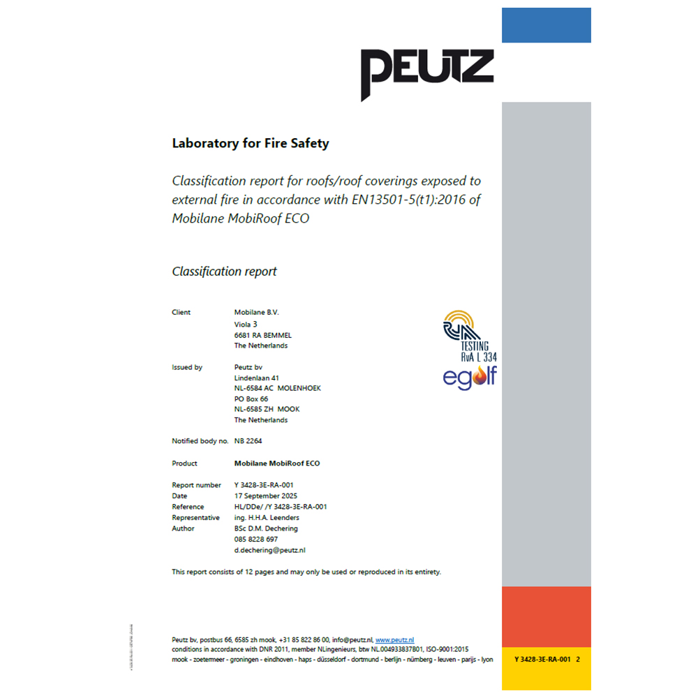 Mobilane MobiRoof ECO – Y 3428-3E-RA-001 Test report